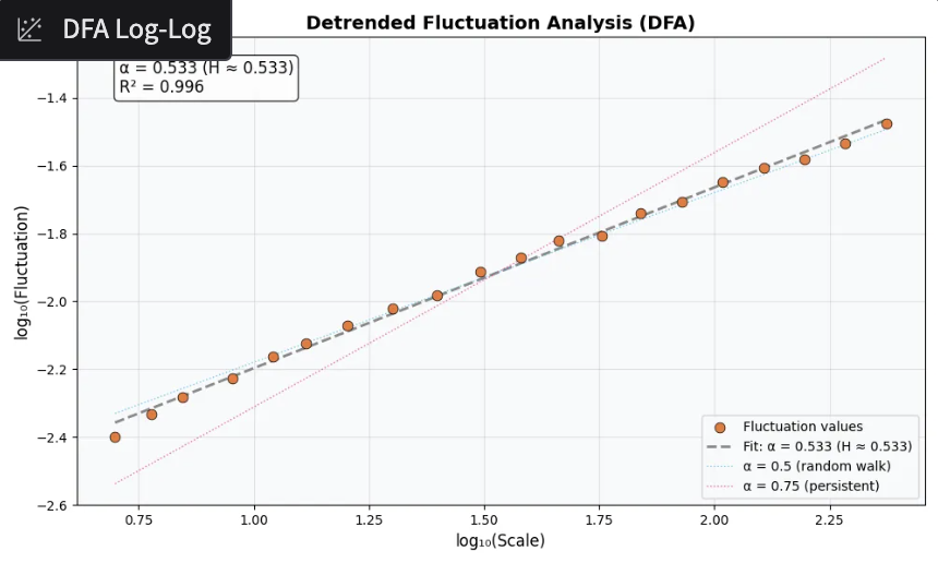 - Fractal memory embedded in the time series that reveals whether momentum is structural or illusory.